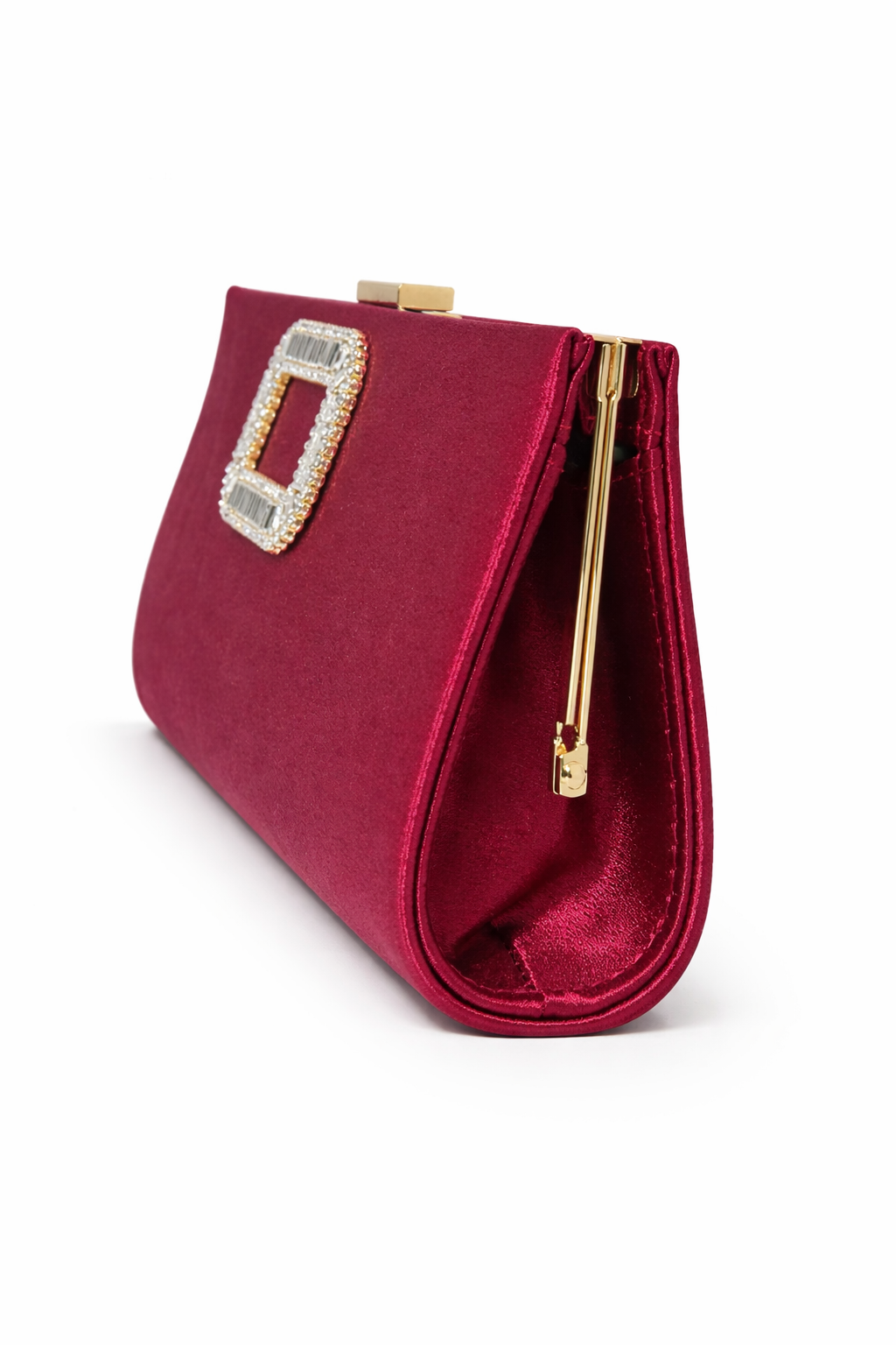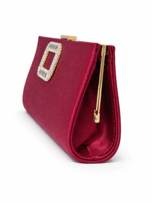 RVIVI BERRY SATIN WITH SILVER BROOCH PURSE