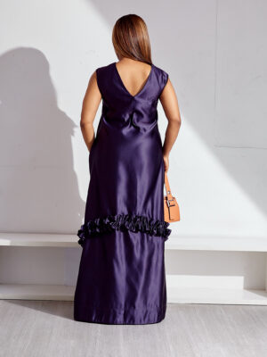 SASHES X HIDES DARK PURPLE CRISS CROSS RUFFLE DETAIL MAXI