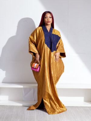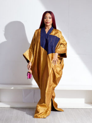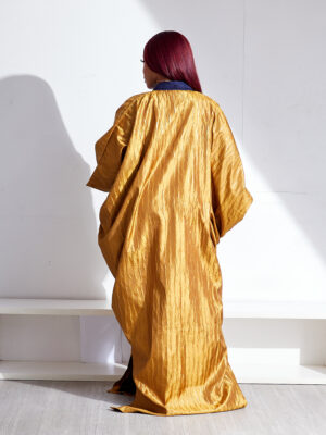 | SASHES X HIDES GOLD BROCADE WITH NAVY LAZERCUT ASOOKE PATCH CAFTAN |