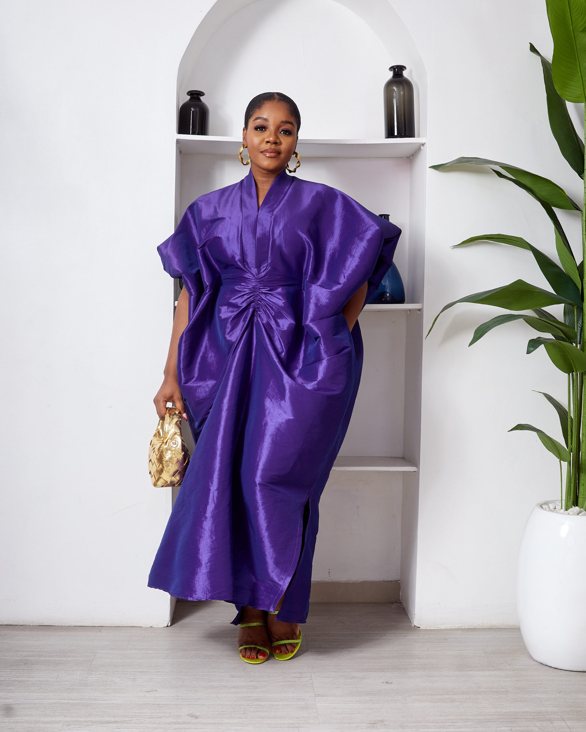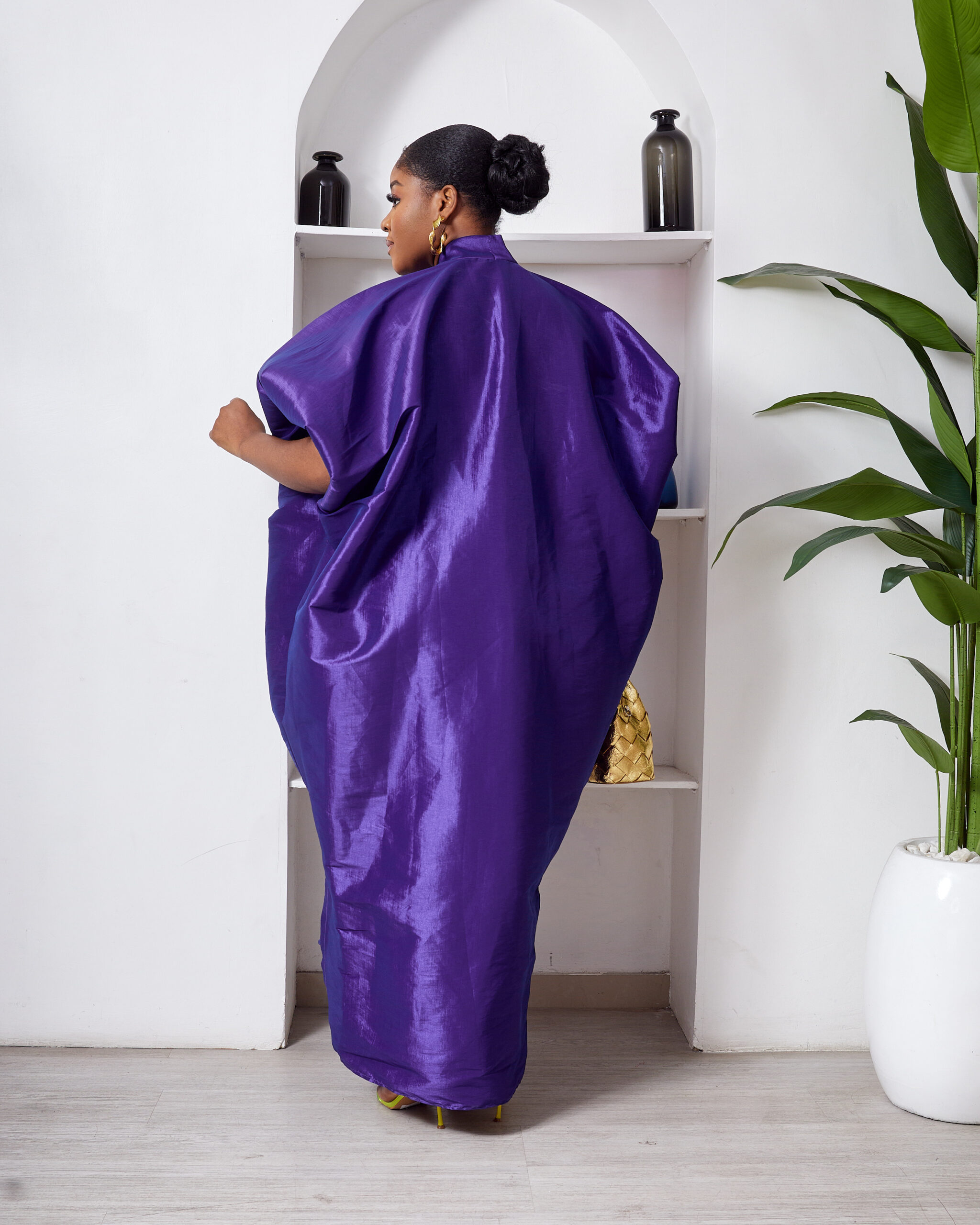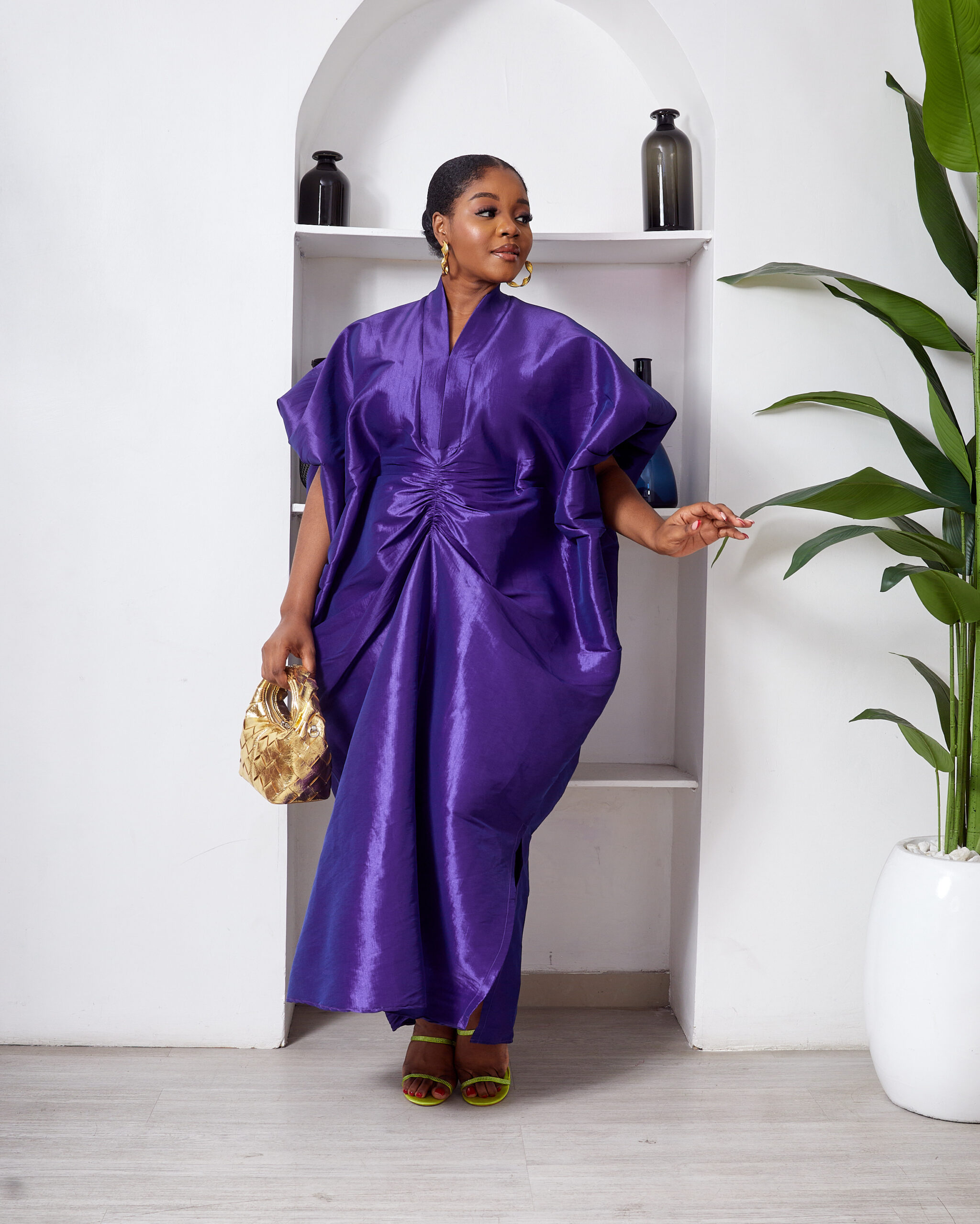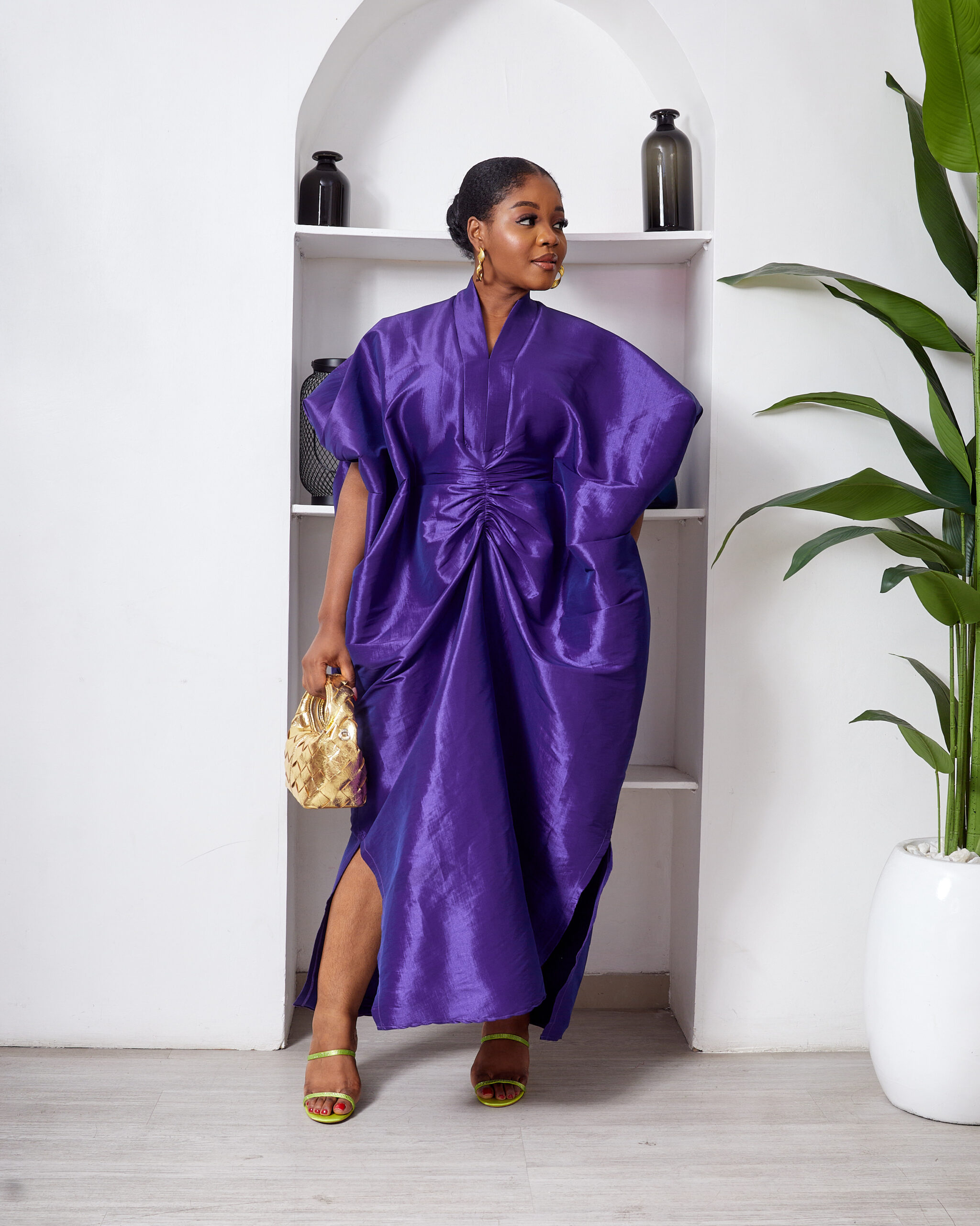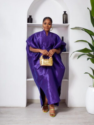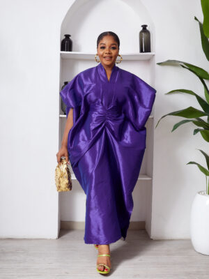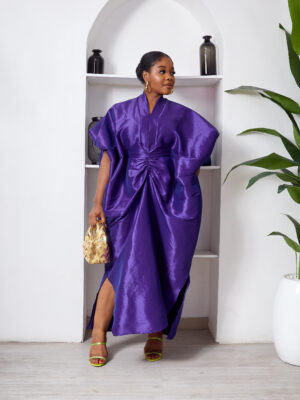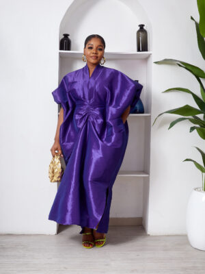 SASHES X HIDES INDIGO TAPHETTA MID DRAPED CAFTAN