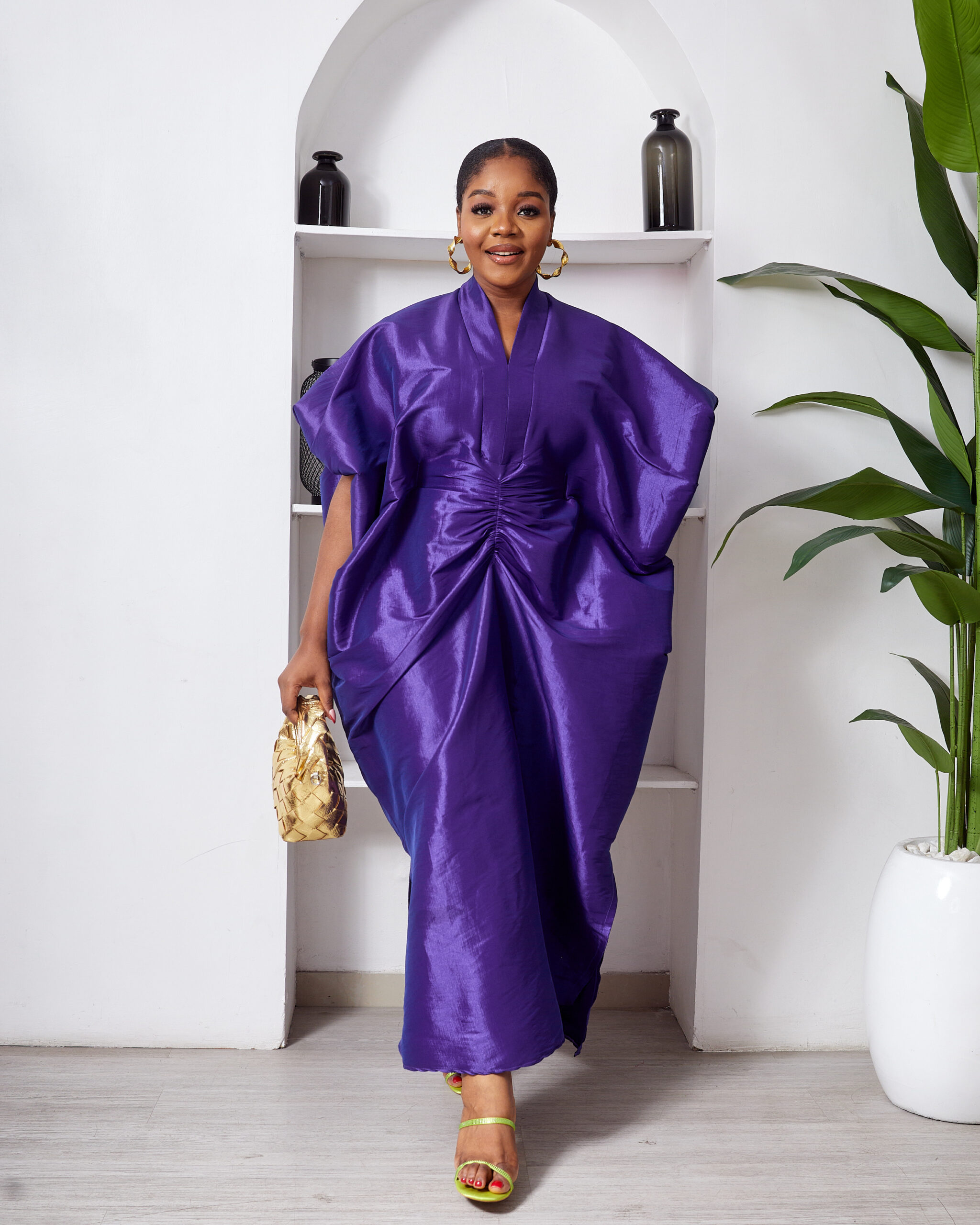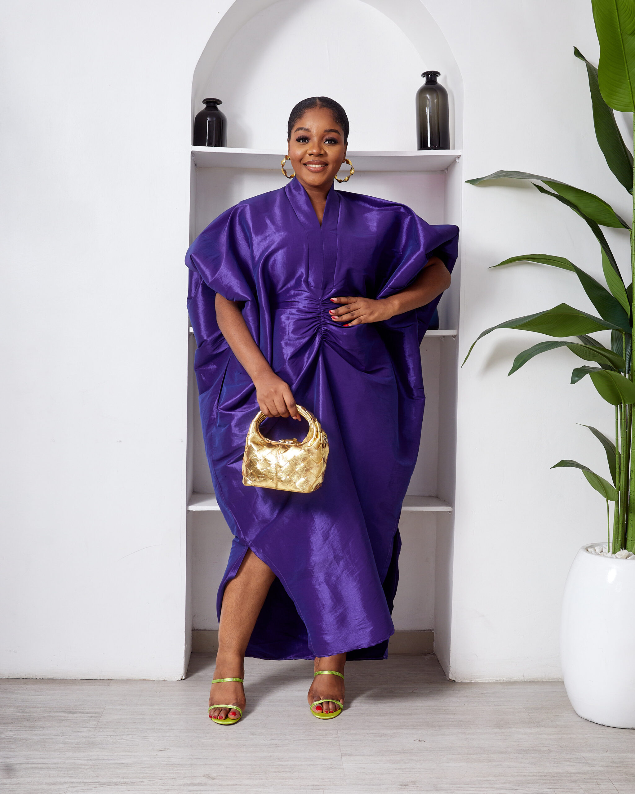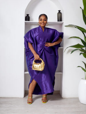 (2 FOR 50K) SASHES X HIDES PURPLE RUCHED SLEEVE COLD SHOULDER MIDI DRESS