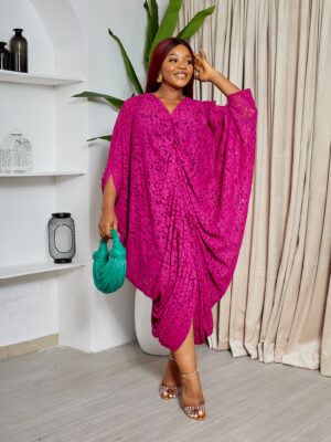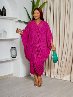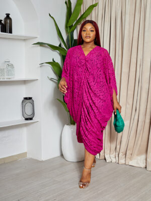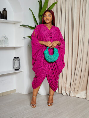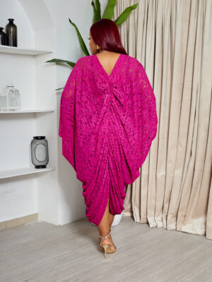 SASHES X HIDES MAGENTA COLD SHOULDER CHANTILLY ELASTICATED CAFTAN