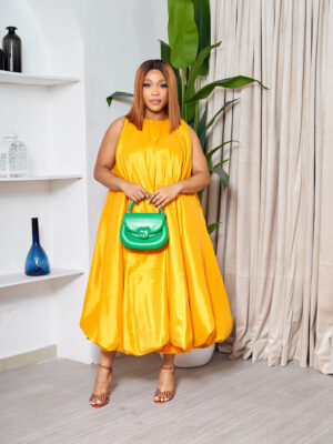 SASHES X HIDES MUSTARD TAPHETTA FLUTE TUNIC