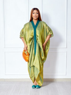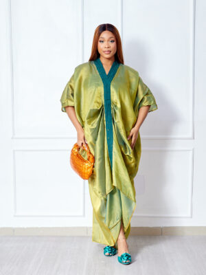 | SASHES X HIDES OLIVE MID DRAPED ASOOKE TAPED CAFTAN |