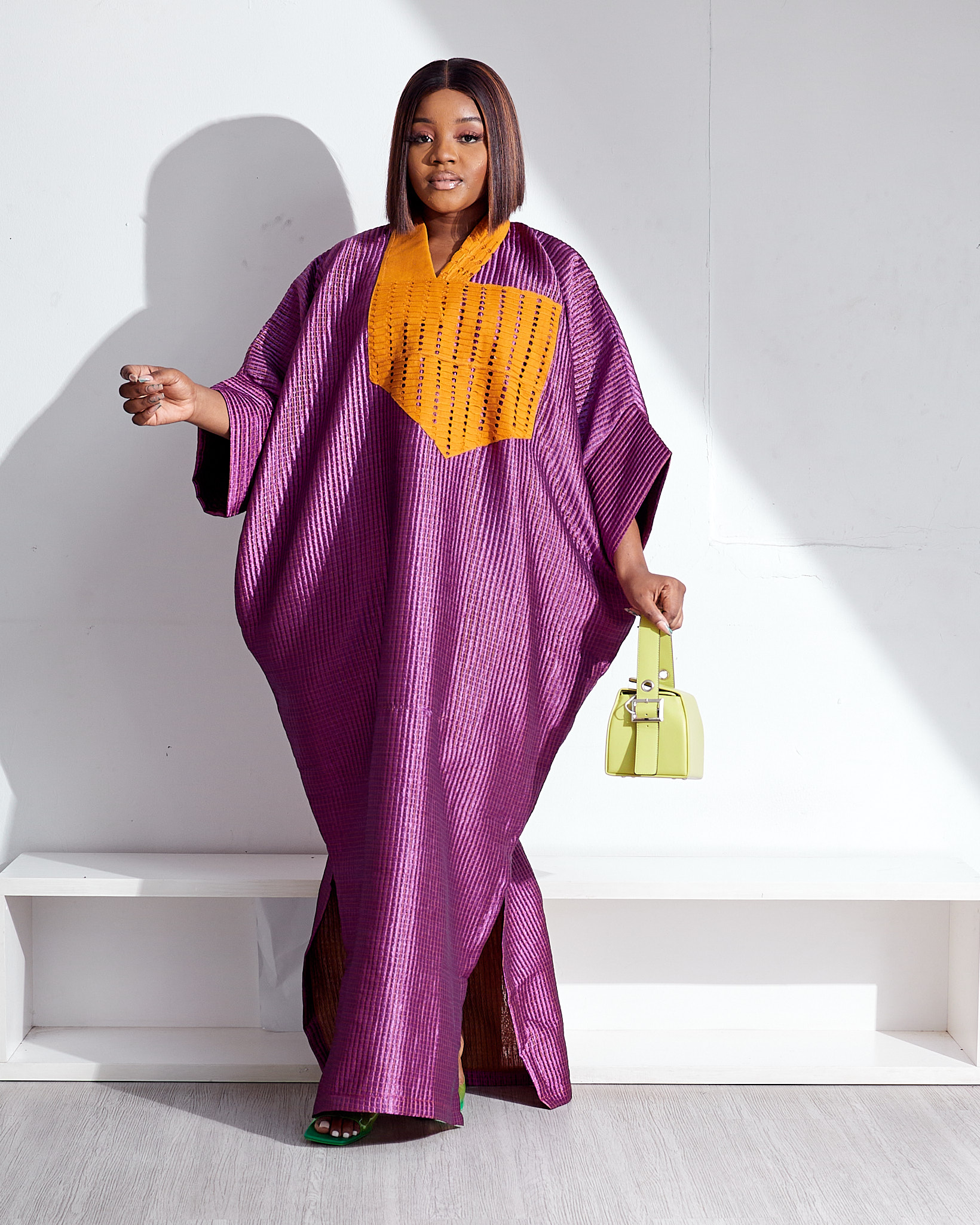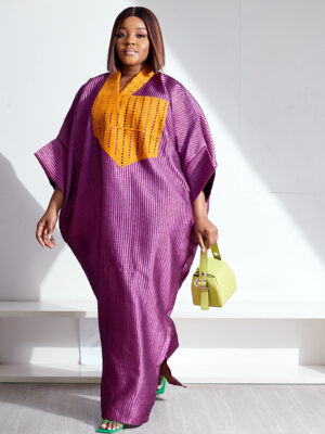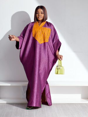| SASHES X HIDES PURPLE BROCADE WITH CUSTARD LAZERCUT ASOOKE PATCH CAFTAN |