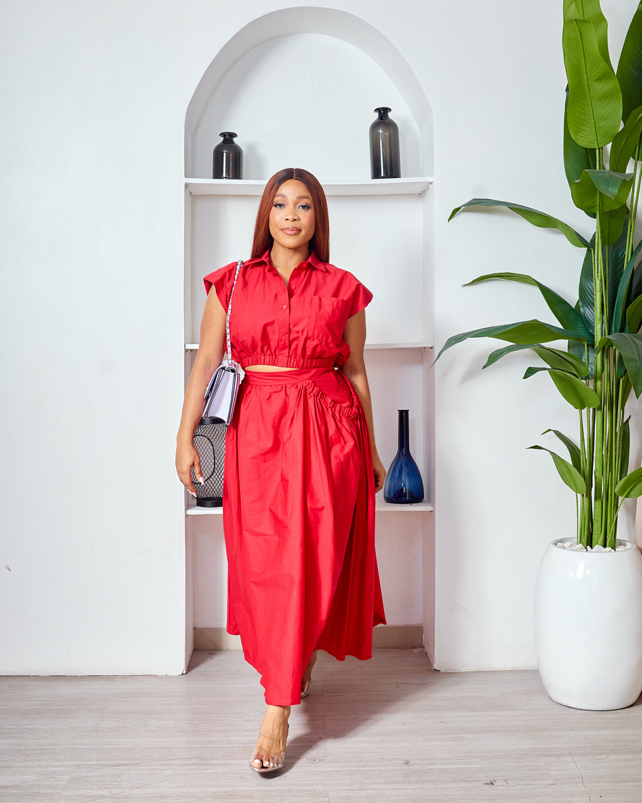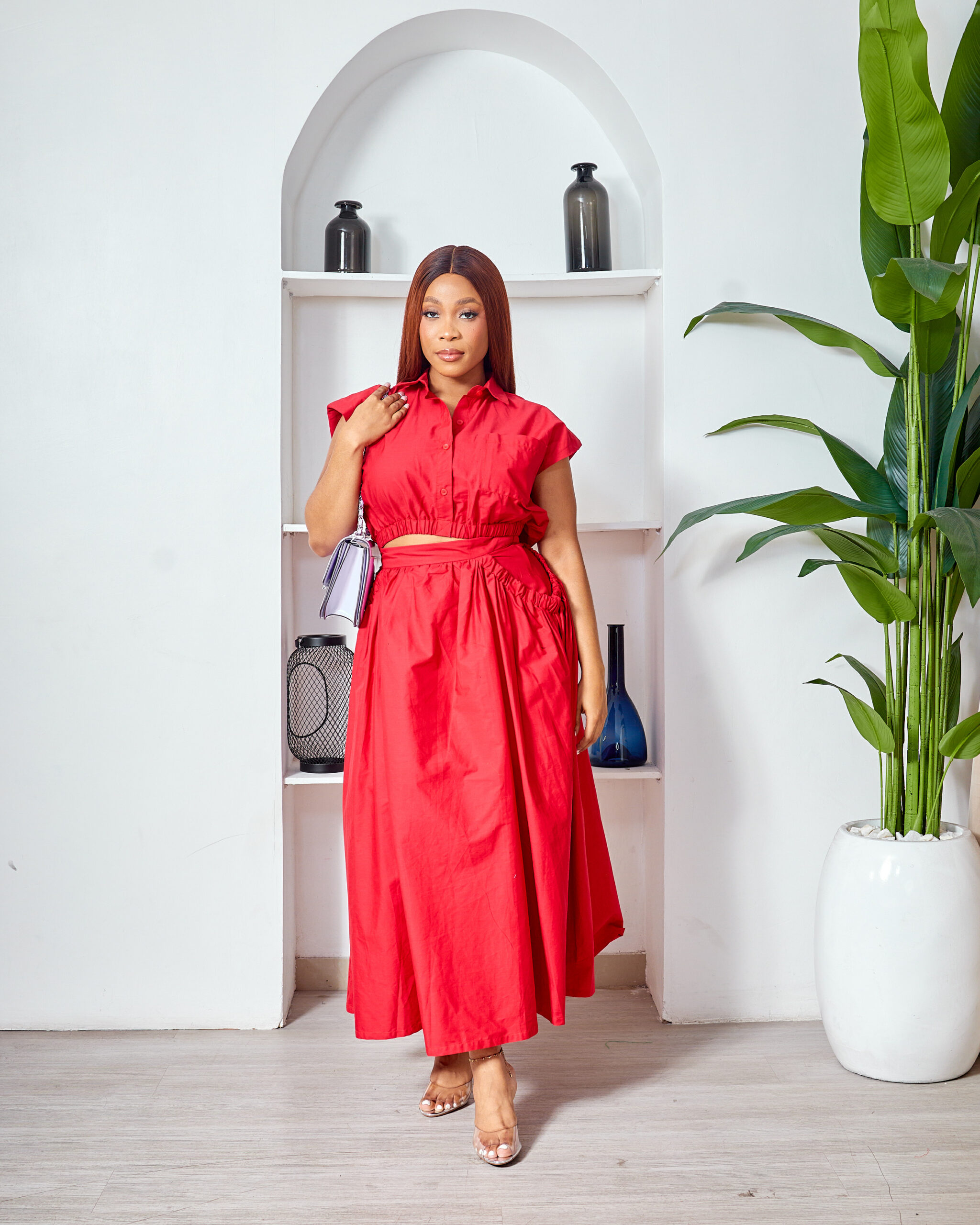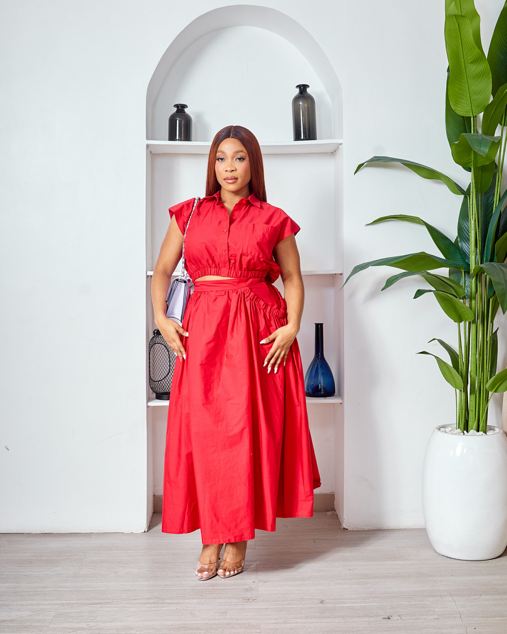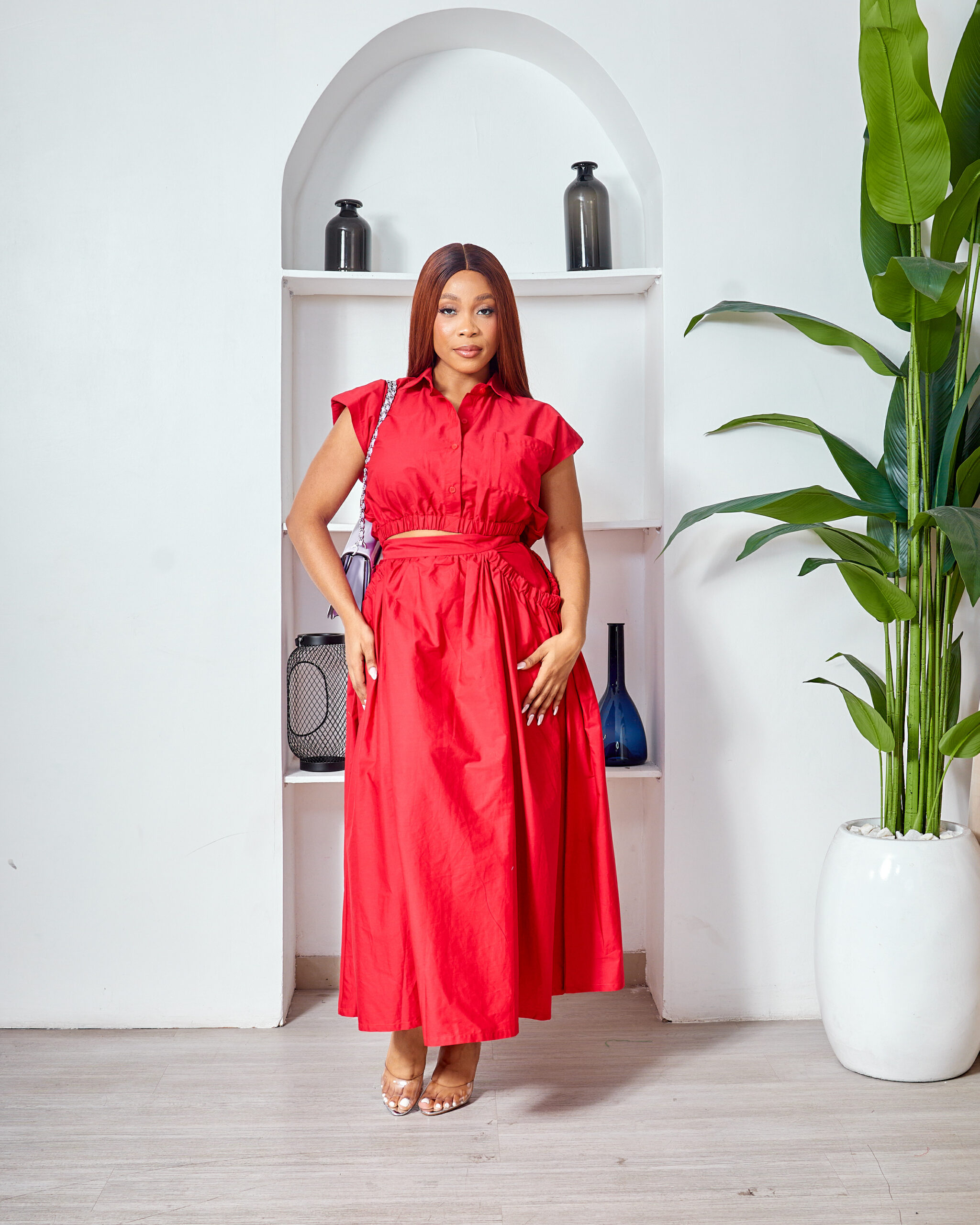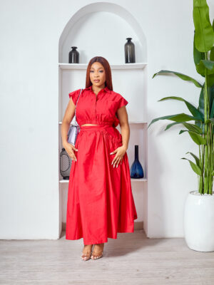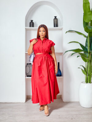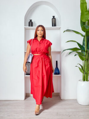 SASHES X HIDES RED CROP TOP X SKIRT SUIT SET