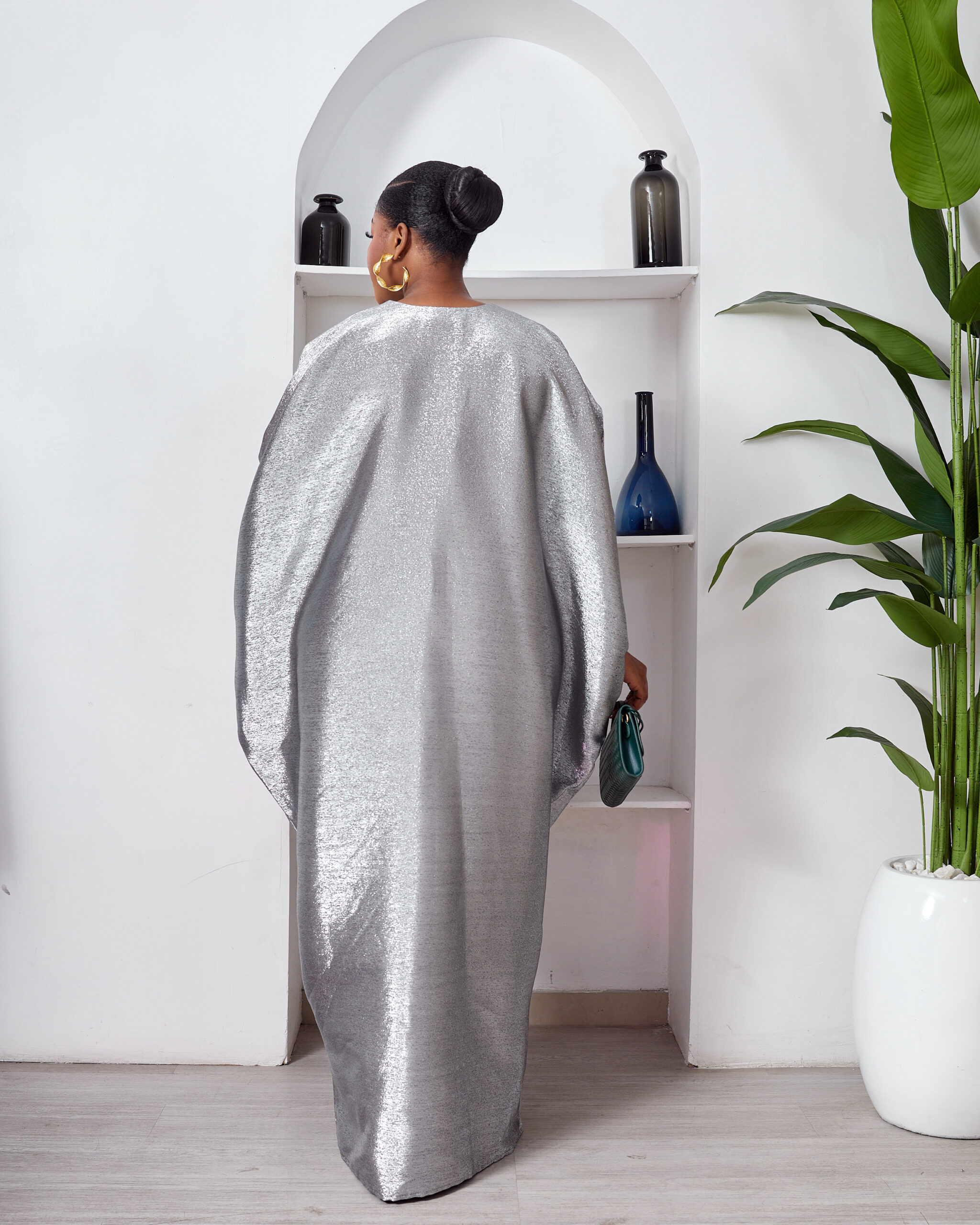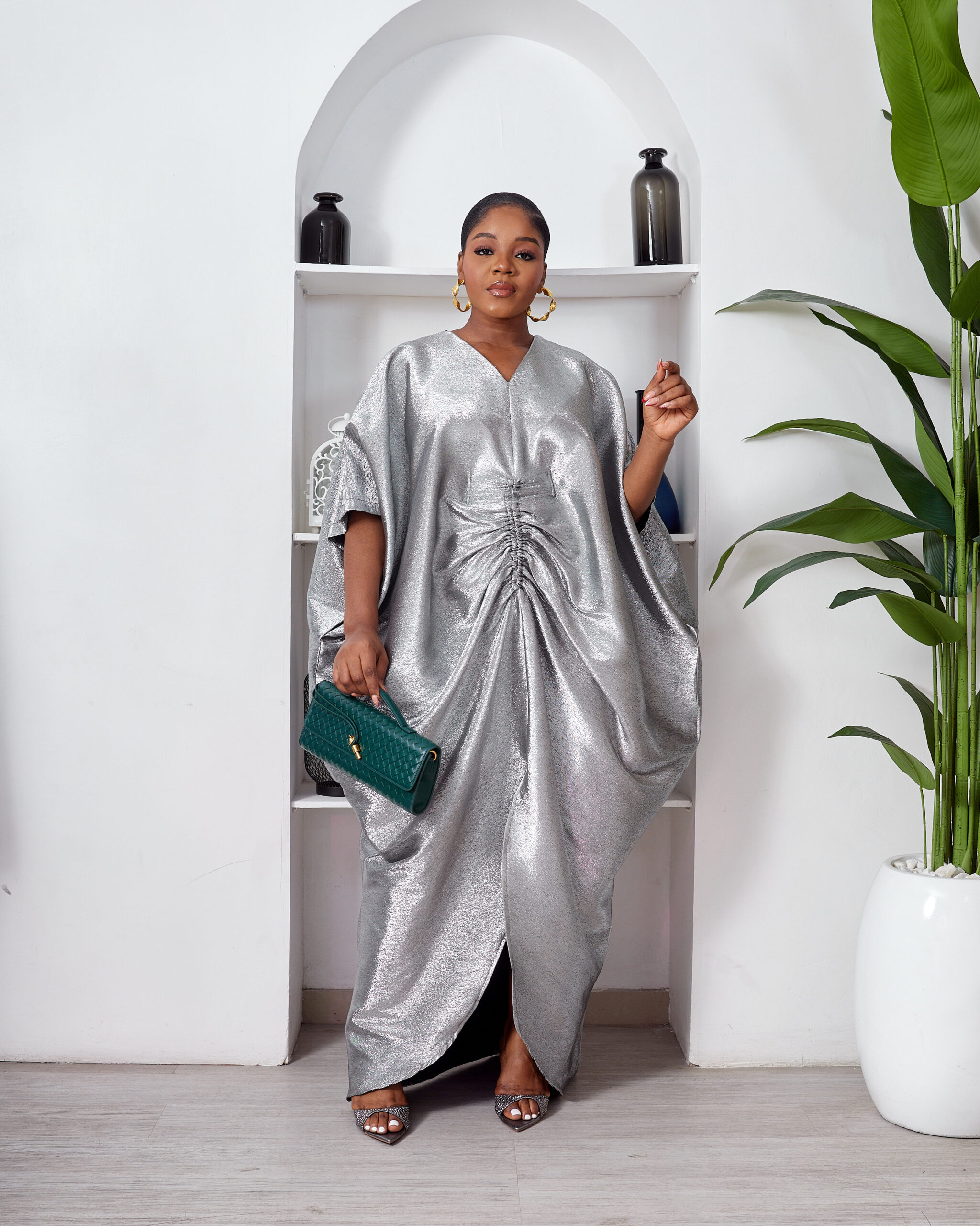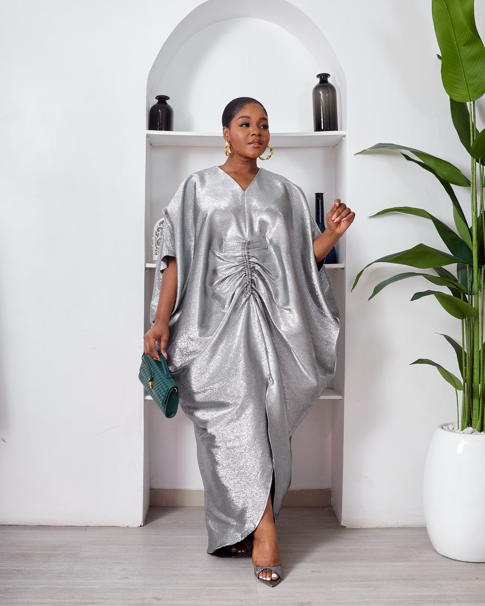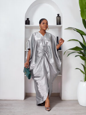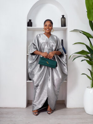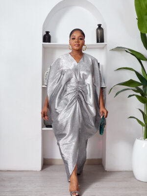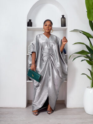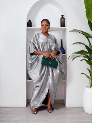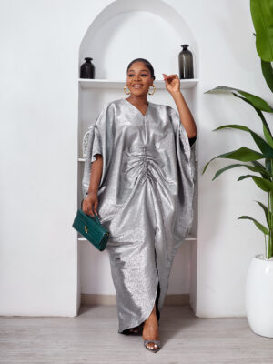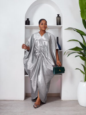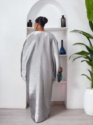 SASHES X HIDES SHINY SILVER BROCADE MID RUCH CAFTAN