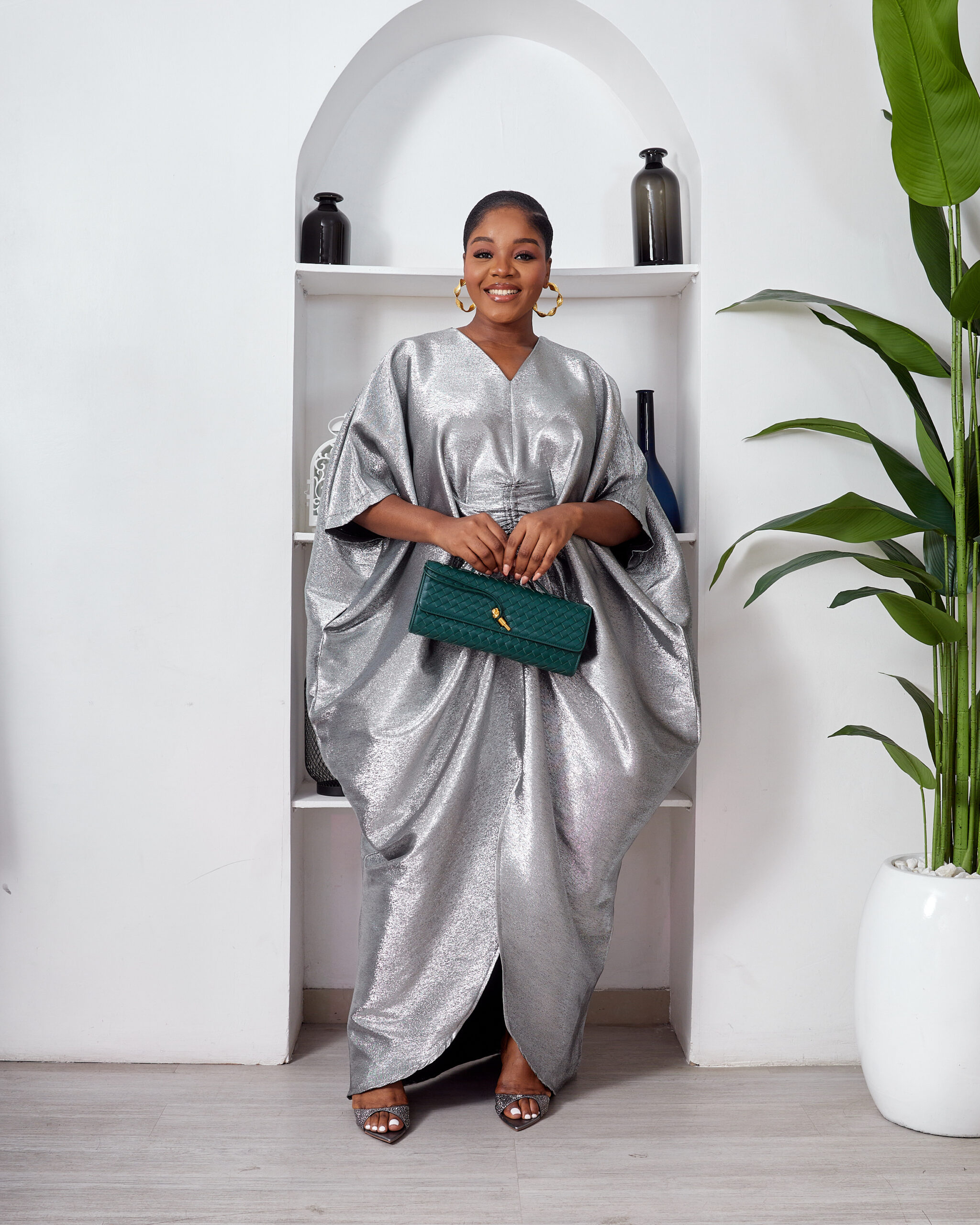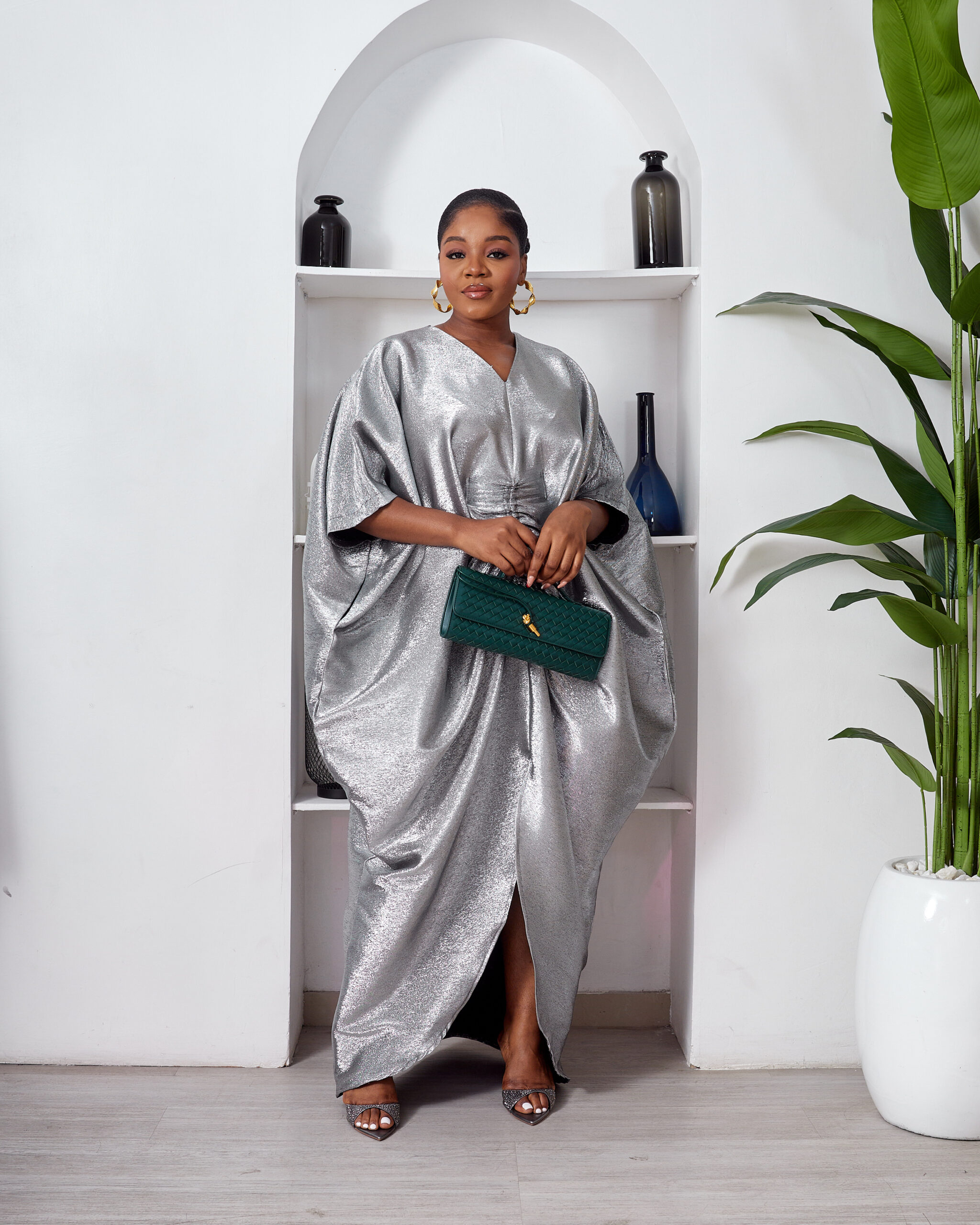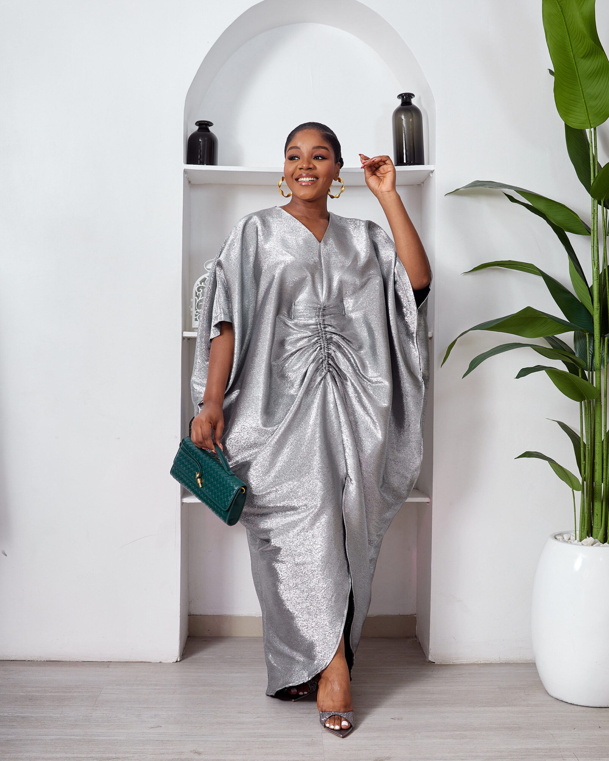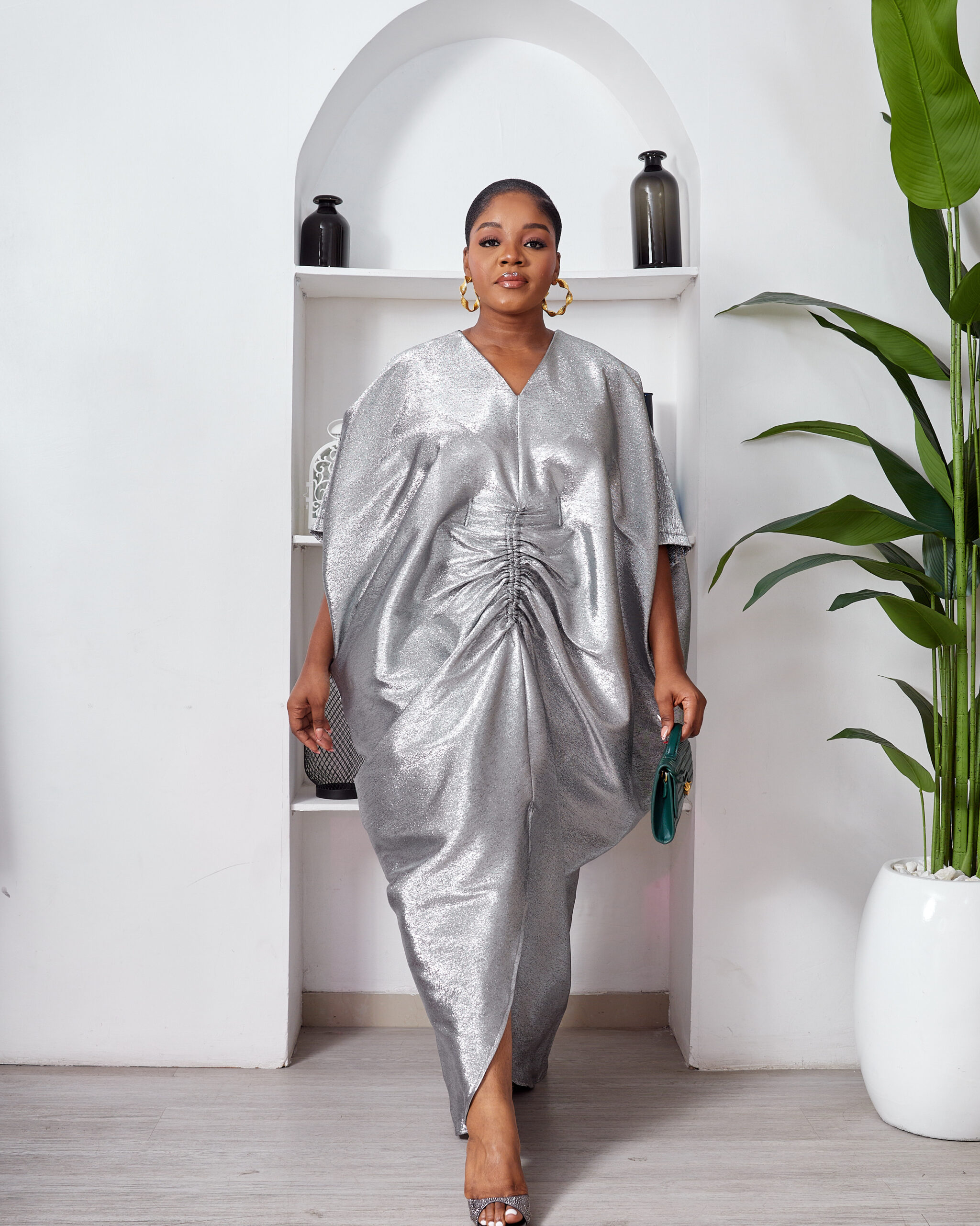 SASHES X HIDES SHINY SILVER BROCADE MID RUCH CAFTAN