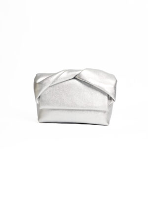 SILVER SOFT TOP BOW WEAVE PURSE