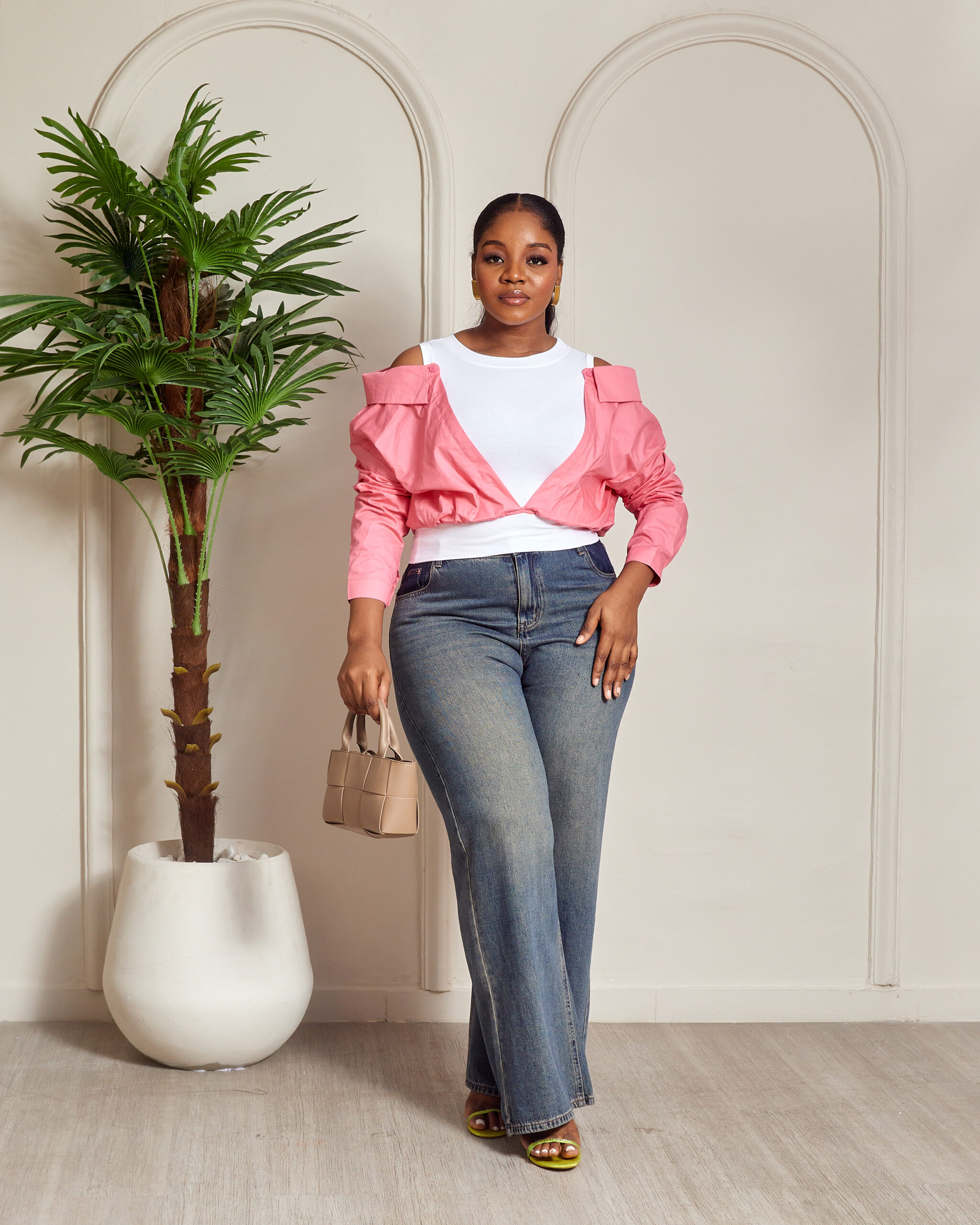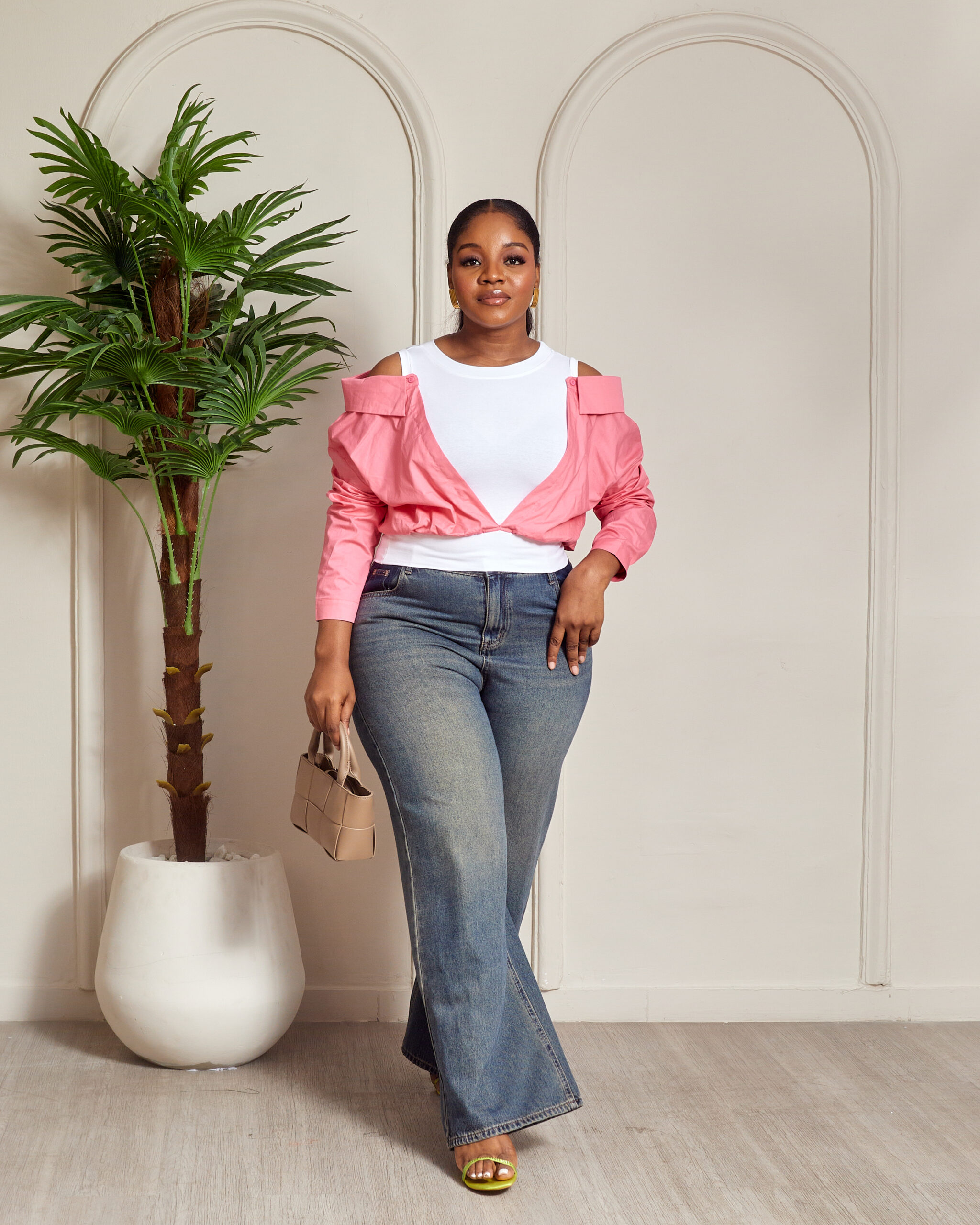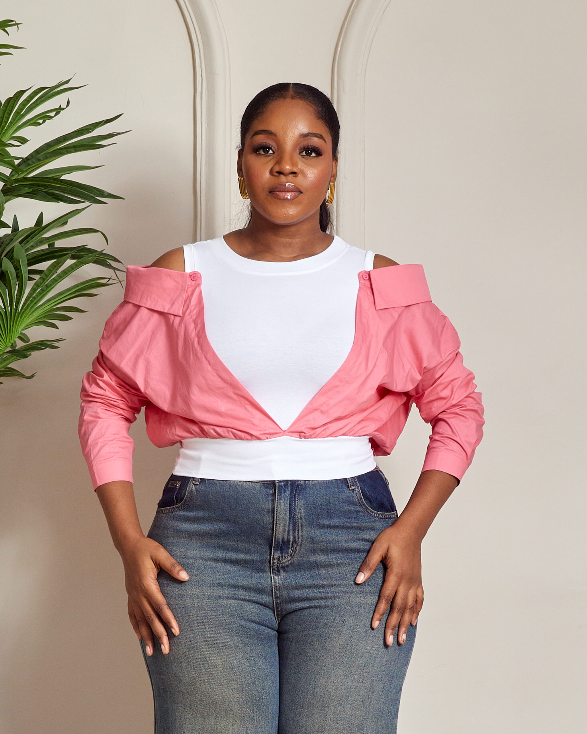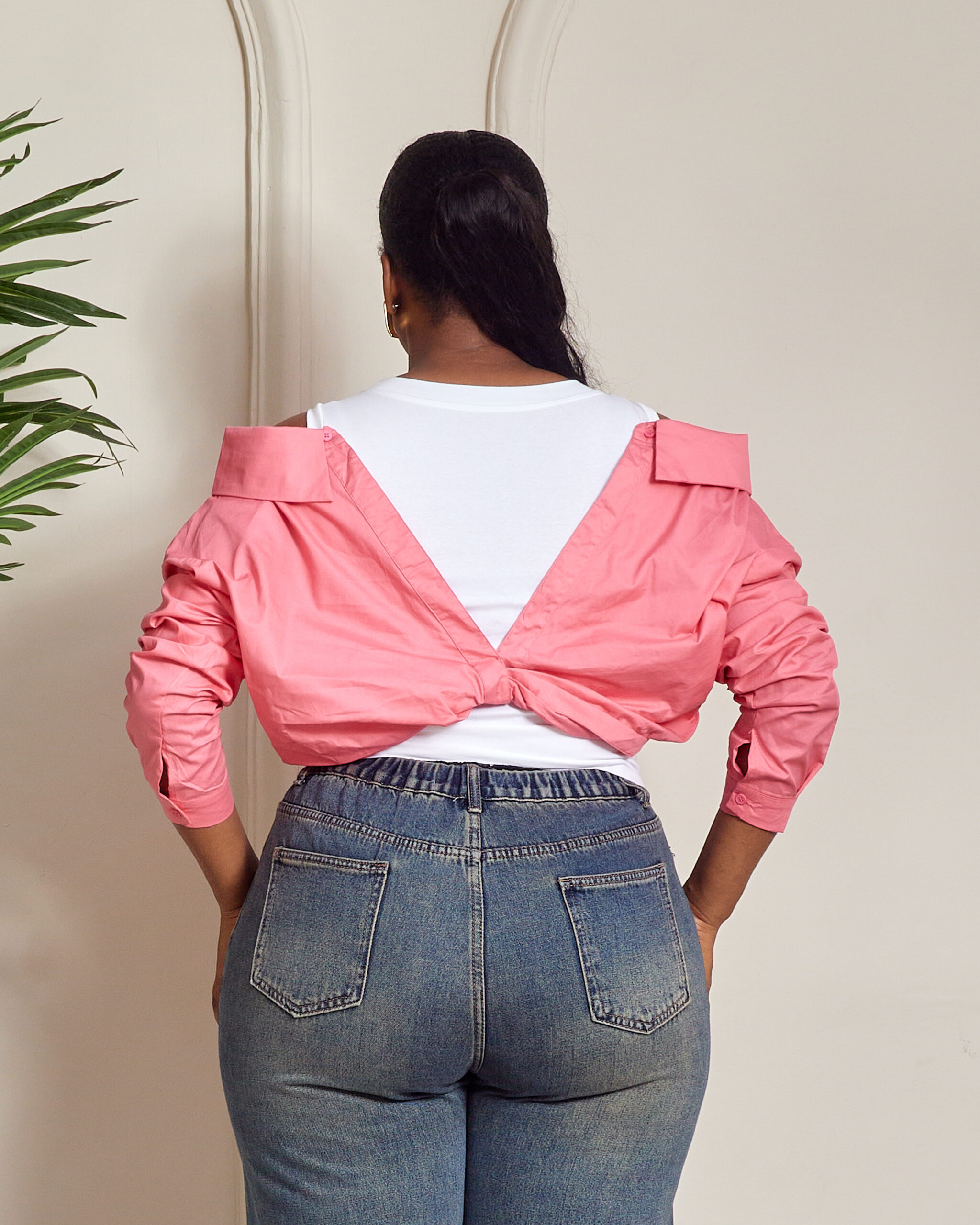 YUANYUAN PINK COLD SHOULDER CROP SHIRT