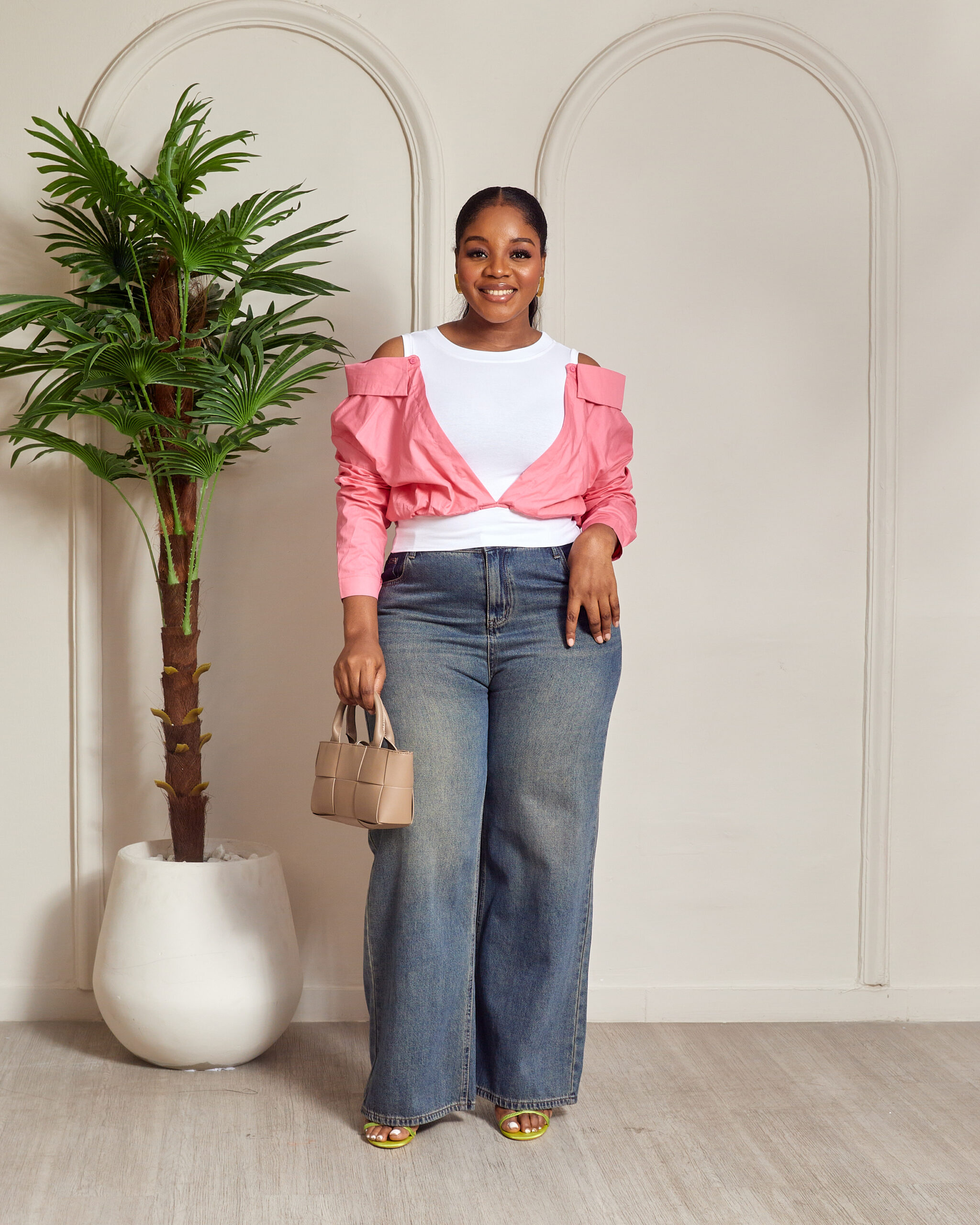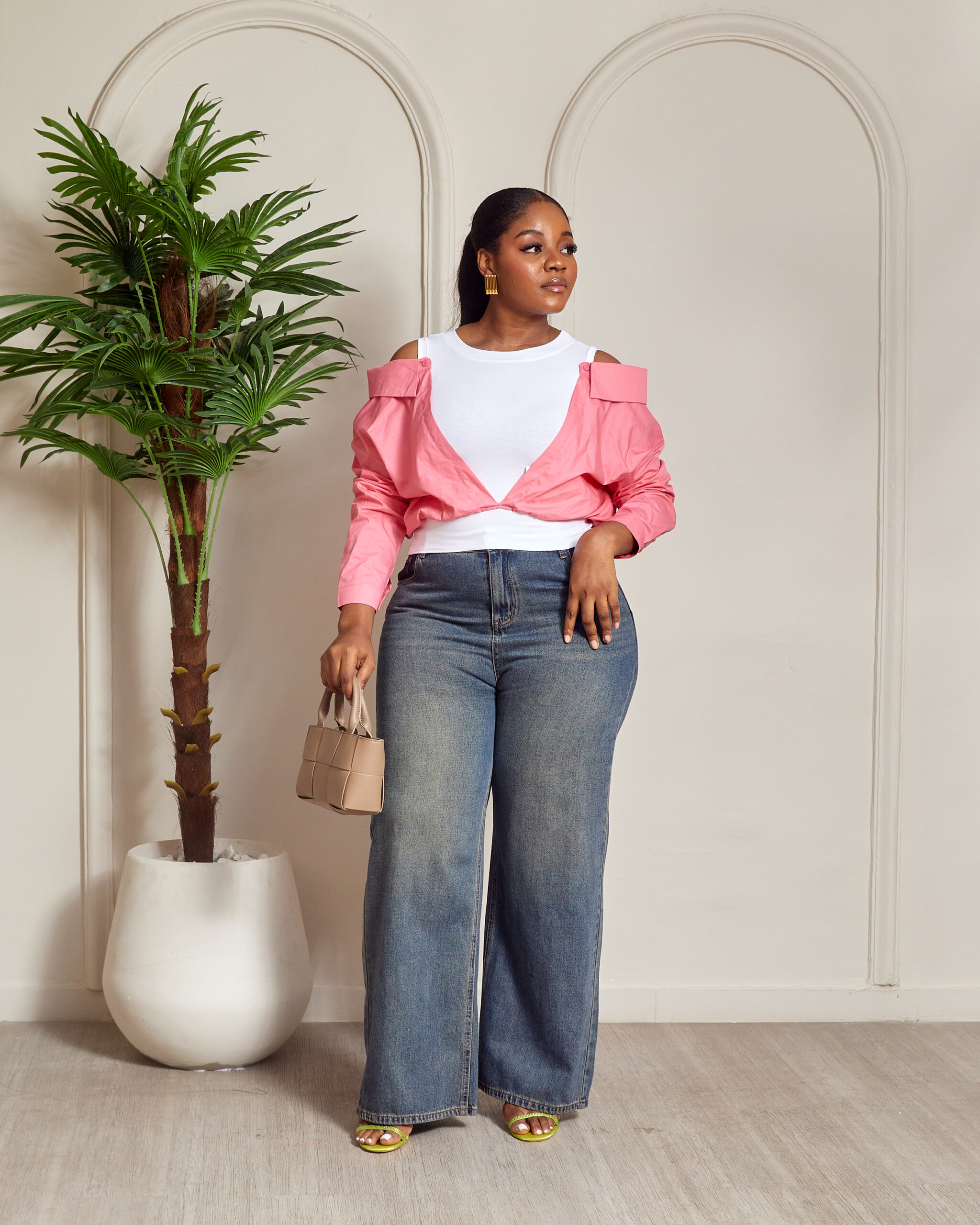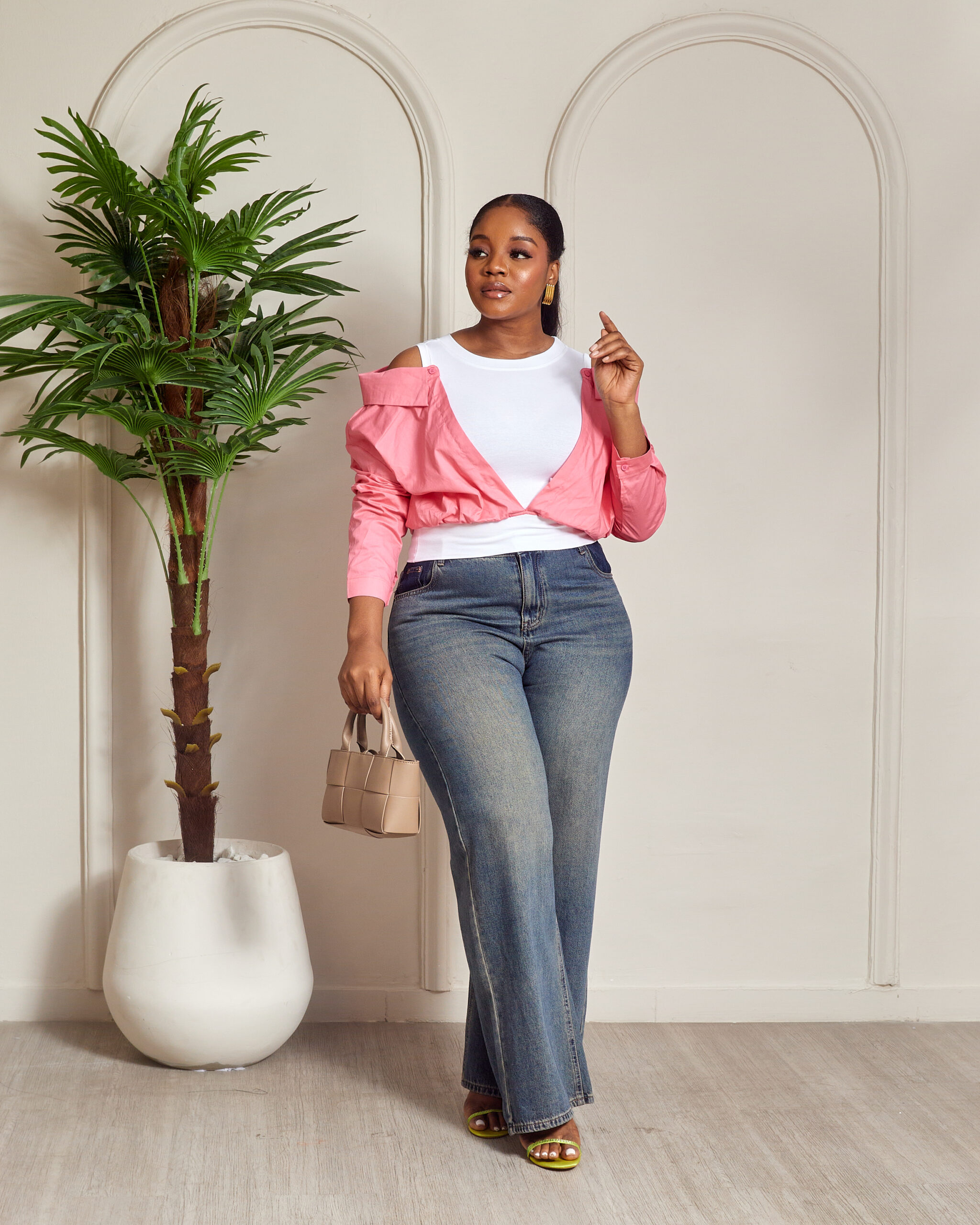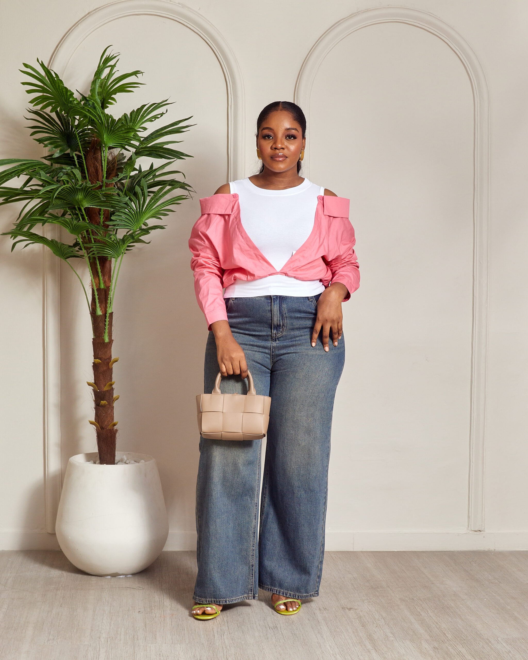 YUANYUAN PINK COLD SHOULDER CROP SHIRT