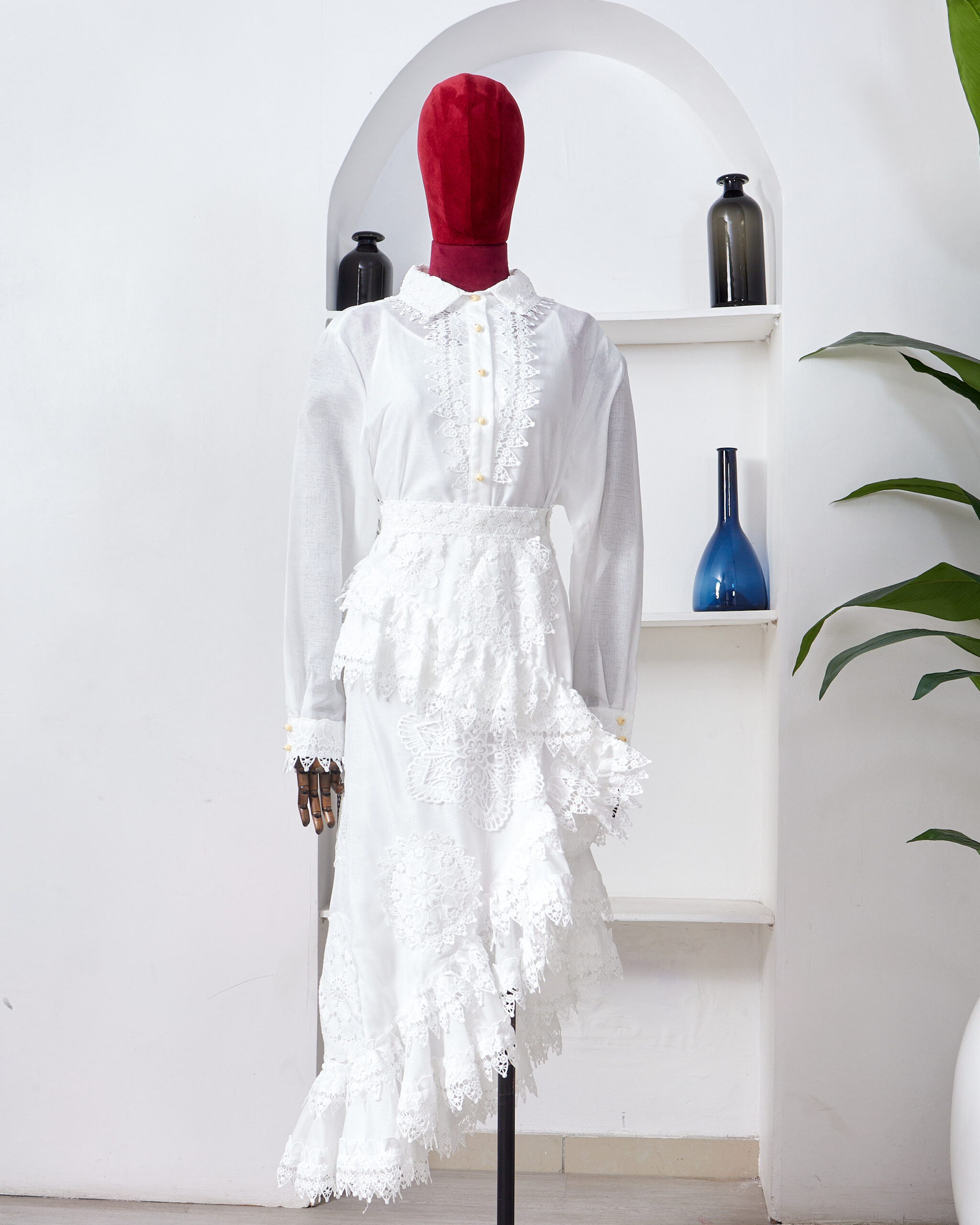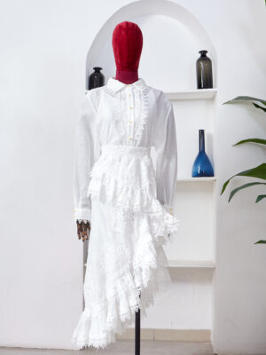 ZMER IVORY SHIRT BLOOM ASSYMETRIC SKIRT SUIT SET