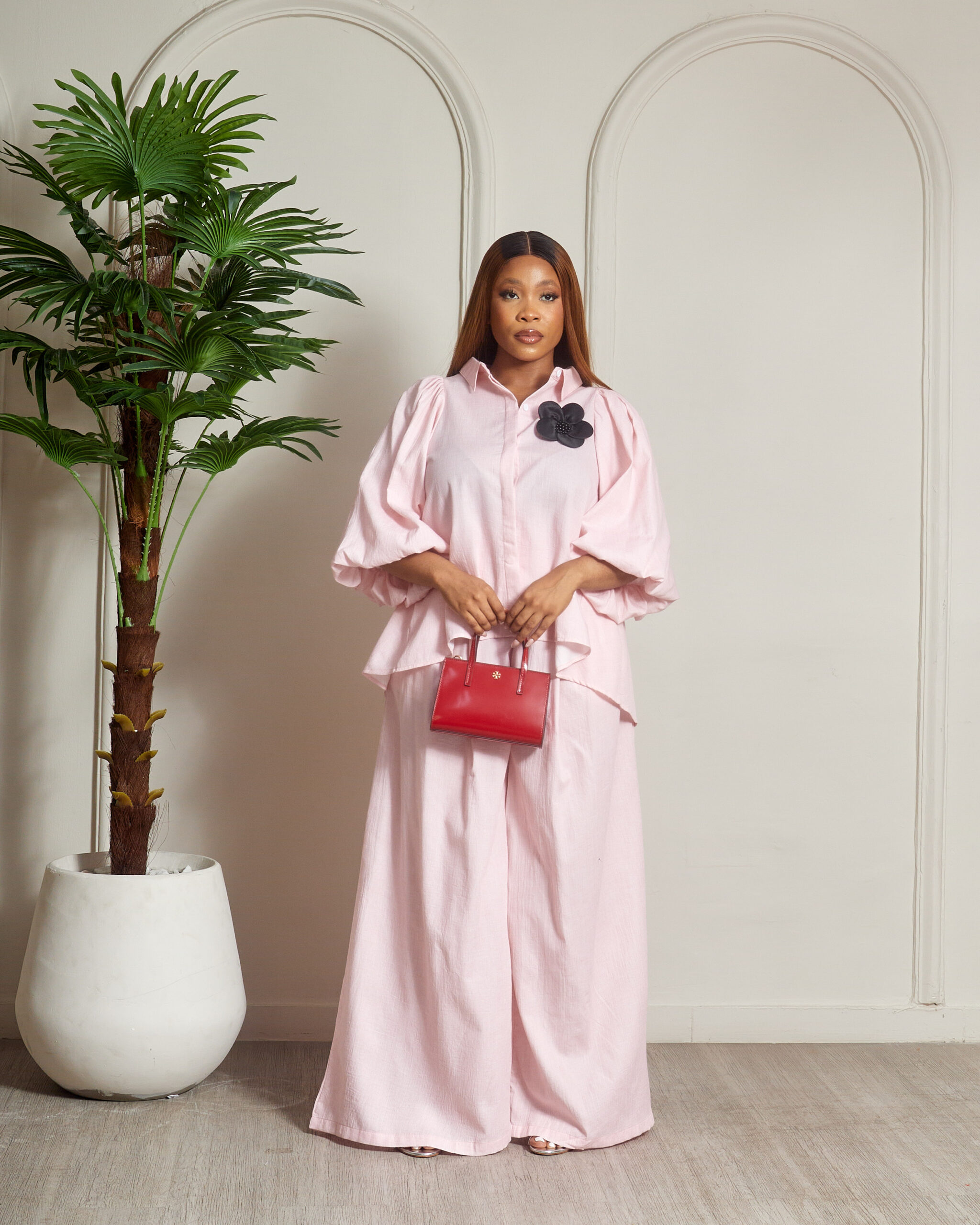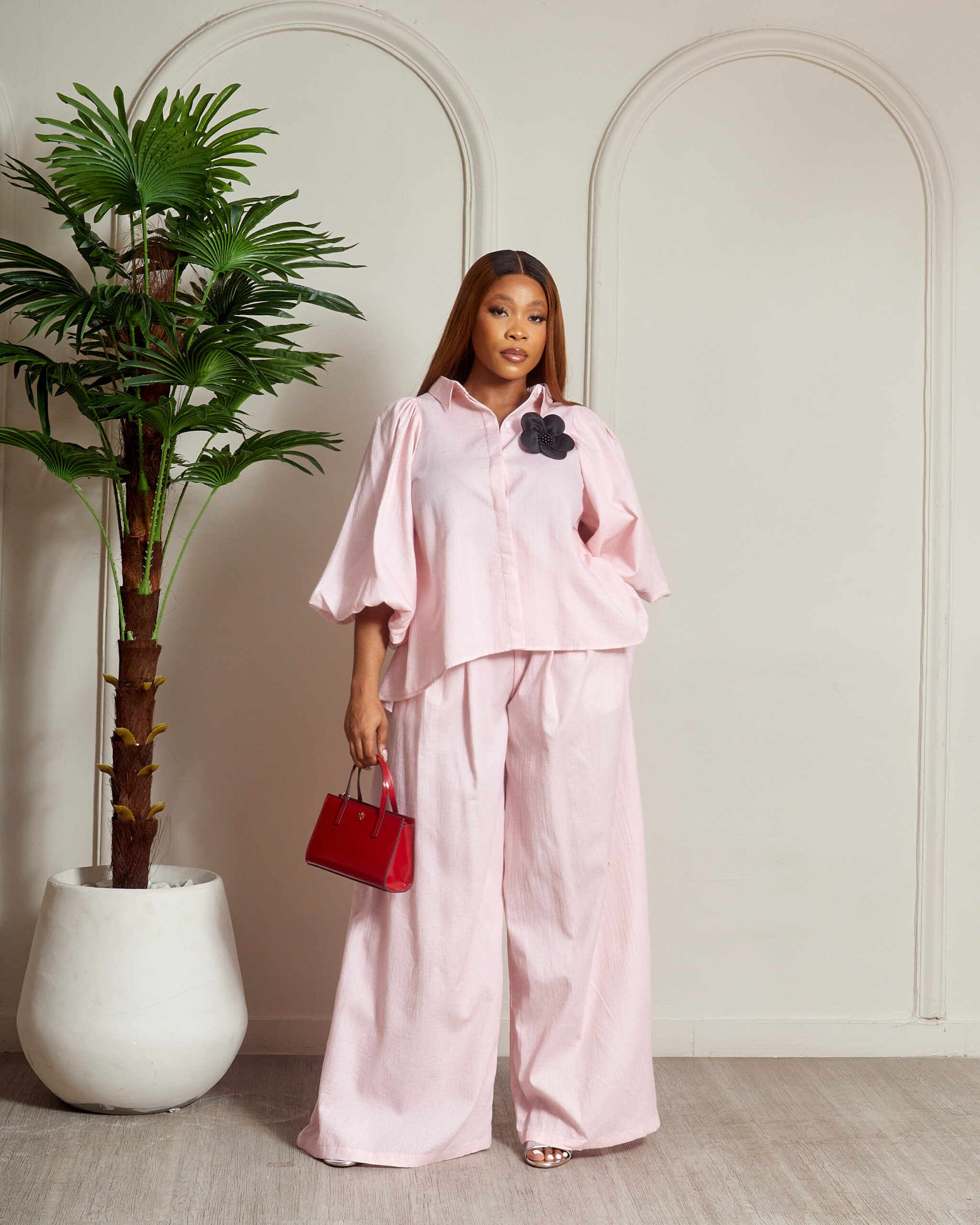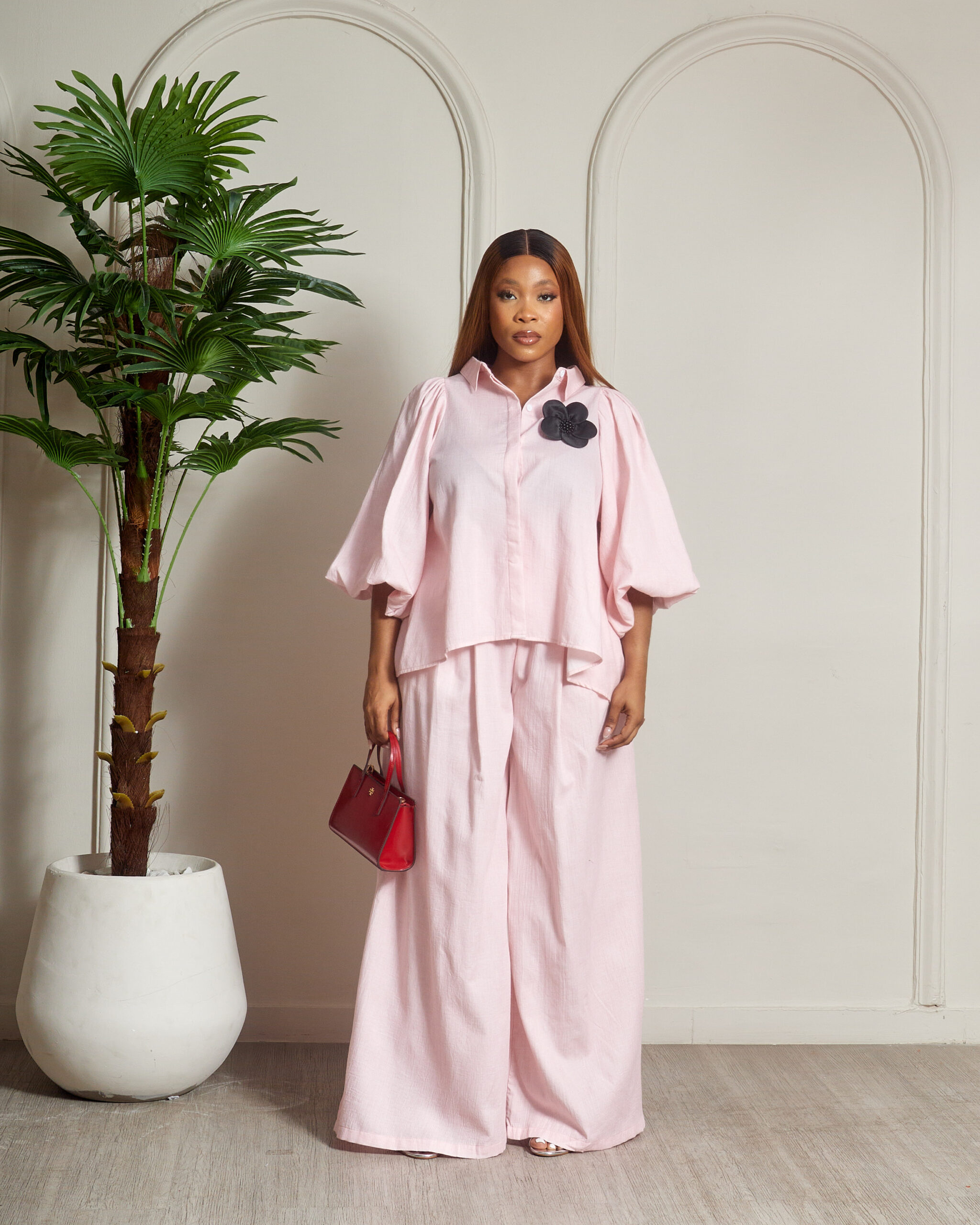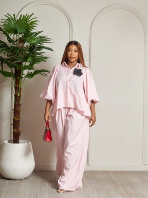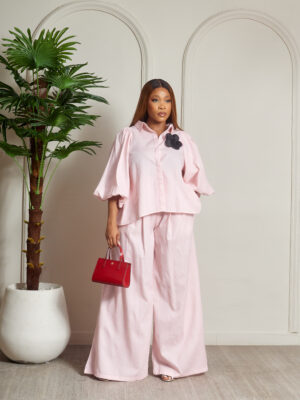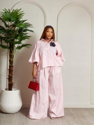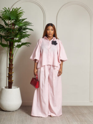ZR PINK BUBBLE SLEEVE PANT SUIT SET